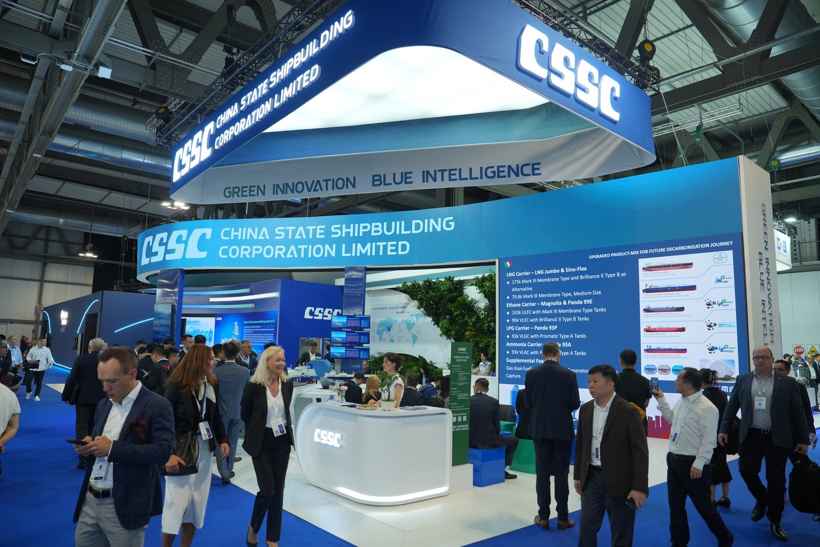 此次展會(huì),中船集團(tuán)緊密圍繞“清潔能源、綠色發(fā)展”參展主題,科學(xué)高效利用展臺(tái)展示空間,設(shè)置集團(tuán)總體區(qū)、海上LNG產(chǎn)業(yè)鏈裝備區(qū)、綠色能源開(kāi)發(fā)儲(chǔ)運(yùn)裝備區(qū)、零碳低碳技術(shù)區(qū)、全球營(yíng)銷服務(wù)網(wǎng)絡(luò)區(qū),系列化、場(chǎng)景化展示中船集團(tuán)高水平海上LNG產(chǎn)業(yè)鏈以及綠色清潔能源領(lǐng)域創(chuàng)新技術(shù)產(chǎn)品和標(biāo)志性成果,包括“夢(mèng)想”號(hào)大洋鉆探船、27.1萬(wàn)立方米超大型液化天然氣運(yùn)輸船、9.9萬(wàn)立方米超大型乙烷乙烯運(yùn)輸船、7500立方米液態(tài)二氧化碳運(yùn)輸船、集裝箱式電解水制氫設(shè)備等,充分彰顯中船集團(tuán)產(chǎn)業(yè)鏈綜合競(jìng)爭(zhēng)優(yōu)勢(shì)和綠色低碳創(chuàng)新能力,高效助力重點(diǎn)客戶關(guān)系鞏固及海外市場(chǎng)開(kāi)發(fā),突出體現(xiàn)推動(dòng)綠色轉(zhuǎn)型發(fā)展的企業(yè)社會(huì)責(zé)任擔(dān)當(dāng)。