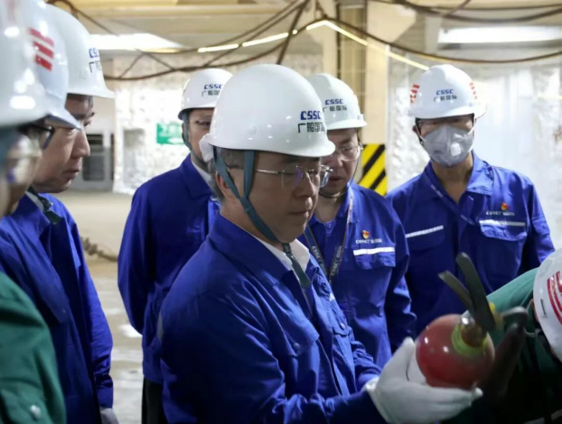 王國強深入船塢、碼頭、車間、技校和幼兒園等生產、科研、教育一線,察看了在建船、生產線、噴涂廠房、學校教研情況,觀摩了激光除銹應用展示;與一線員工、科研和教育工作者就安全生產、科技創新、精益管理、人才培養等互動交流;聽取了相關單位深化改革、生產經營、科技創新、“十五五”規劃編制、黨的建設等方面匯報,對下一步工作提出具體要求。