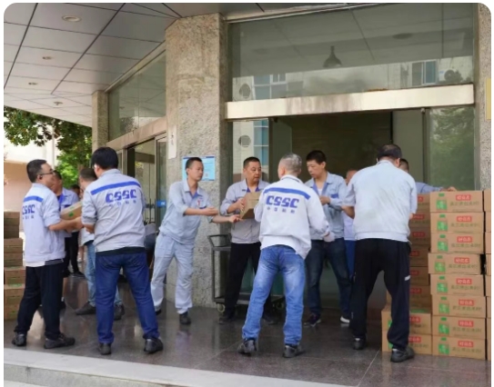 為應(yīng)對持續(xù)高溫天氣,中船物資全面部署防暑降溫工作,切實保障一線員工健康安全。下屬各子公司嚴(yán)格落實安全生產(chǎn)責(zé)任,組織專項安全檢查,強化作業(yè)現(xiàn)場安全管理;結(jié)合不同崗位作業(yè)強度,科學(xué)制定防暑降溫方案,并通過安全教育提升員工應(yīng)急處置能力。同時,積極開展“關(guān)愛員工送清涼”慰問活動,為一線員工發(fā)放藿香正氣水、清涼飲料等防暑物資,并升級改造員工休息室,改善高溫作業(yè)環(huán)境。