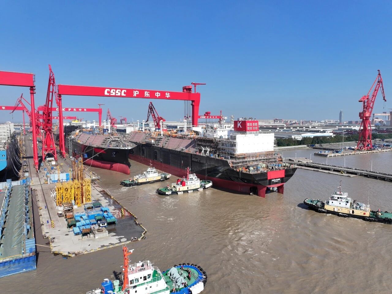 10月17日,中國船舶集團有限公司旗下滬東中華為卡塔爾能源項目建造的17.4萬立方米液化天然氣(LNG)運輸船“米赫澤姆”號和“東沙尼”號同日命名。這標志該公司深入貫徹落實中船集團“沖刺四季度”工作取得重要成果,在一周內完成2船交付、2船命名、3船出塢、3船入塢,交出LNG運輸船產能倍增優異答卷。