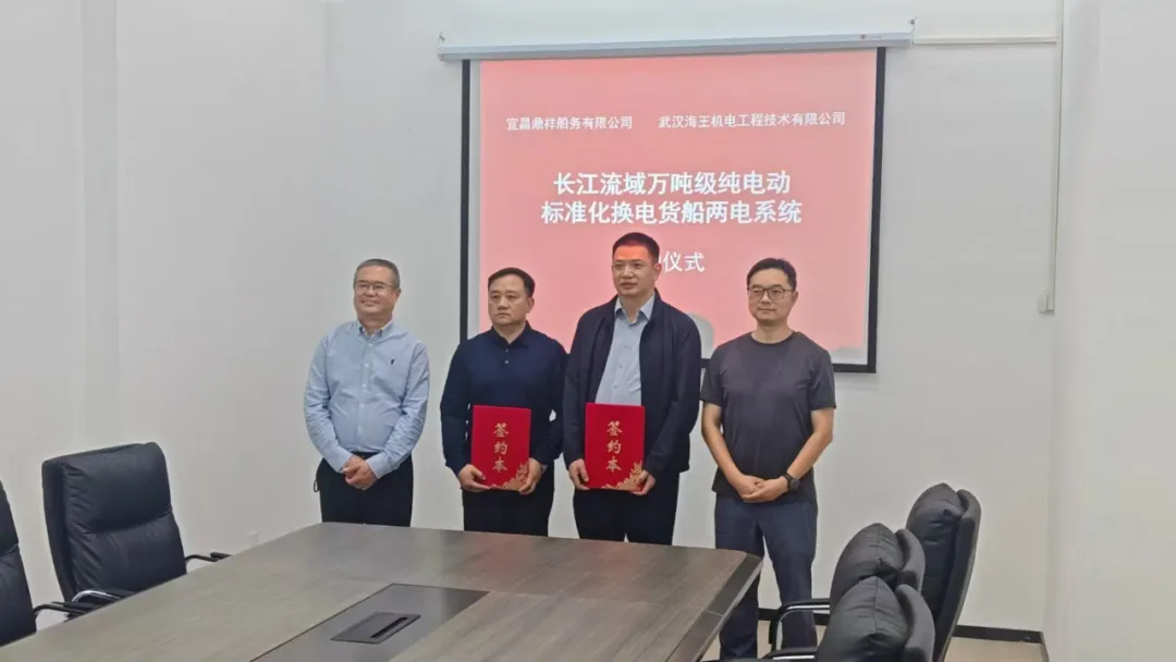 近日,中船集團(tuán)七一九所旗下武漢海王機(jī)電工程技術(shù)有限公司與宜昌鼎祥船務(wù)有限公司達(dá)成關(guān)鍵合作,成功簽訂4船(套)長(zhǎng)江流域萬(wàn)噸級(jí)電動(dòng)標(biāo)準(zhǔn)化換電貨船兩電系統(tǒng)和智能系統(tǒng)供應(yīng)合同,標(biāo)志著雙方在綠色智能船舶裝備領(lǐng)域的合作正式落地。